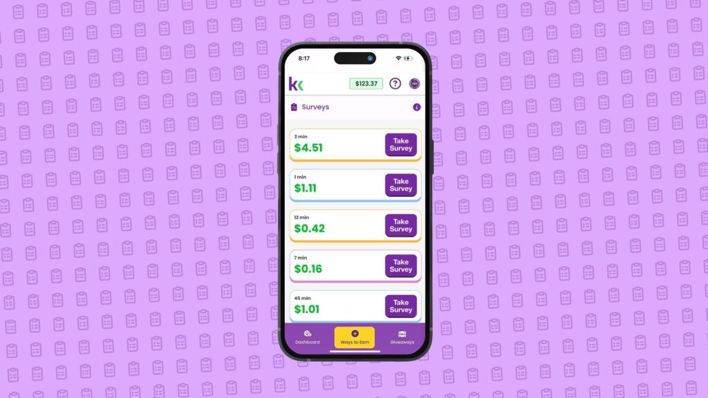 Earning potential: Surveys can pay anywhere from a few cents to a few dollars. KashKick lets you know how much each survey pays before you start.